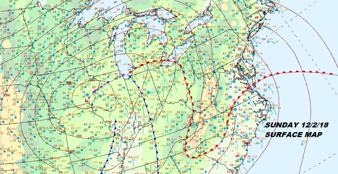 Low pressure in Southeastern Iowa this morning is moving slowly northeastward. A warm front snakes eastward across Ohio and it remains pinched off in the Appalachians and then snakes back around to the Virginia coast. The front will eventually pass us later this morning and this afternoon and winds will turn to the west southwest. This should allow some areas from NYC west to warm into the 60s today.