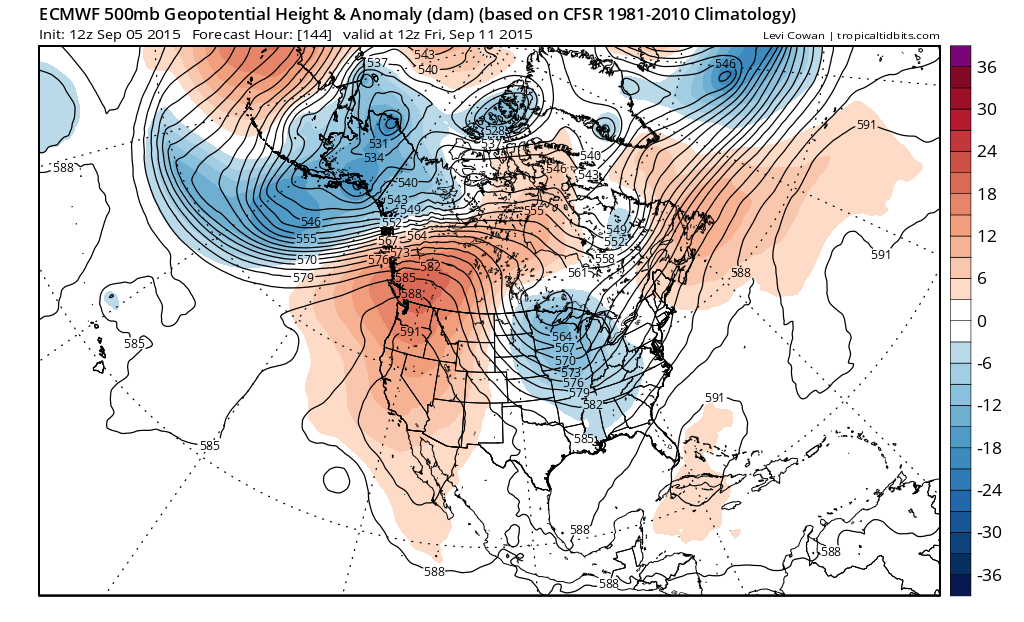 One of the benefits of my new website is that you can go back and read past posts as everything is archived now in this blog format. The last few days Joestramaus has been dealing with models in the long range forecast going all over the place on the overall pattern. Today is no different as we have another flip into a rather dynamic pattern across the US if this is real and i have my doubts on both the European and the GFS. Part of the reason for this is twofold. Models tend to be volatile when a pattern change is underway keying on different elements. We also have Pacific hurricanes which may or may not strengthen the low in the Gulf of Alaska which forces a ridge in the west and a trough in the east. Take a look at the latest long range mess presented to us today by the models.