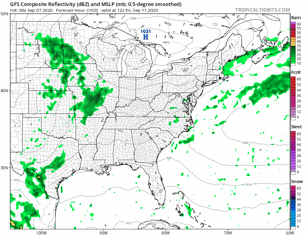 We will see the front pass to our south and stall as the high in the Great Lakes builds into New England. This will probably bring some drier air into the area on Friday and Saturday before a stronger cold front arrives on Sunday. We will see temperatures in the 70s Friday and Saturday with clouds and some sun both days. Showers and thunderstorms could be an issue next Sunday.