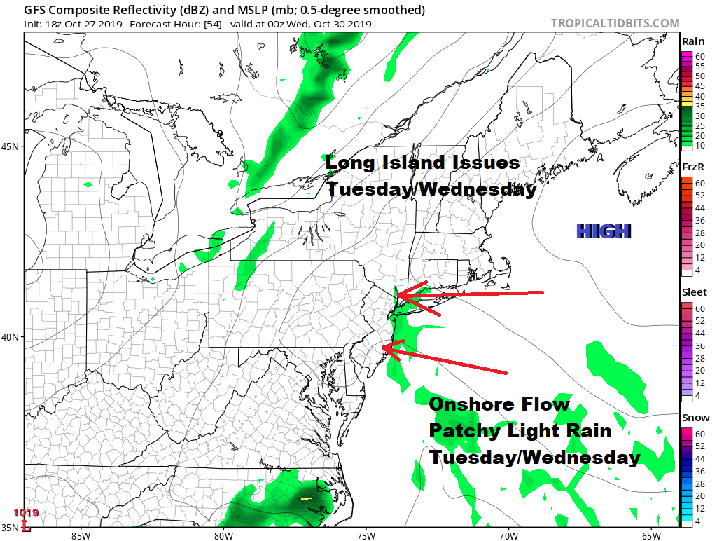Long Island Onshore Flow Brings Clouds Patchy Rain Tuesday
