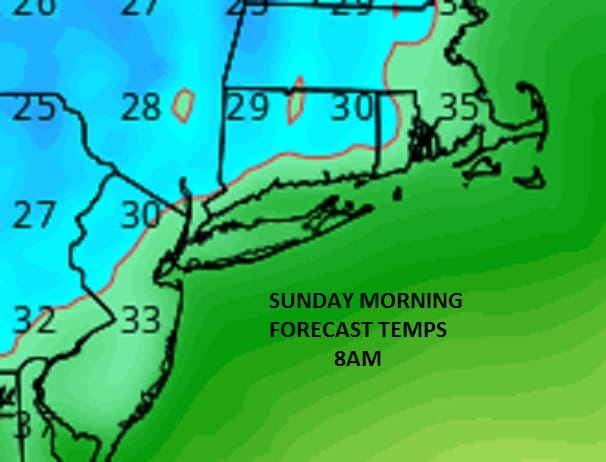 Sunday morning and Monday morning could see temperatures near 32 and that could mean frosts or freezes depending on winds and cloud cover. My suspicion is Monday morning would be the better chance for a frost or freeze between the 2 days though in some areas it could be for both. Warmer urban areas closer to New York City should stay above 32.