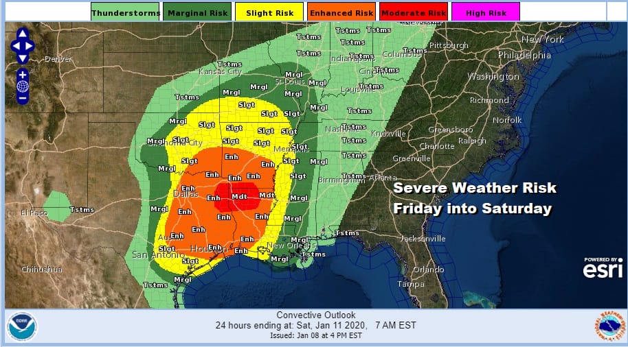 The other big storm here will be an unusual severe weather outbreak across the Gulf States. A rare moderate risk of severe weather is being indicated and there could be a sizable tornado outbreak from this. The warm air has to go somewhere and with that high offshore, we stand to benefit from this temperature wise with highs into the 60s and possible records being set.