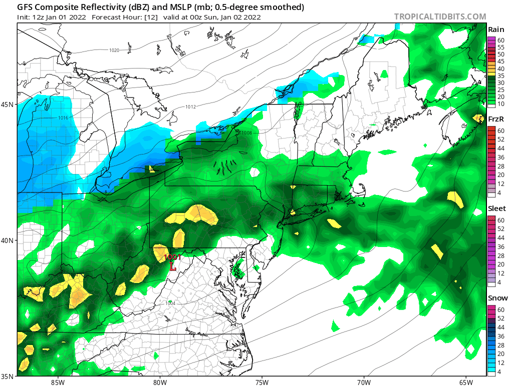 You could not have asked for a worse day for the first day of 2022 but we are simply picking up where we left off from last year. It has been raining most of the day and the radar continues to show more rain to the west that is headed here for tonight into Sunday morning. Temperatures are in the warm 50s. Our Southern Plains storm is moving northeast through the Ohio Valley and it is producing widespread severe weather across the Tennessee Valley and Deep South with heavy rains in the Ohio Valley and snow with winter storm warnings from Kansas to the Great Lakes.