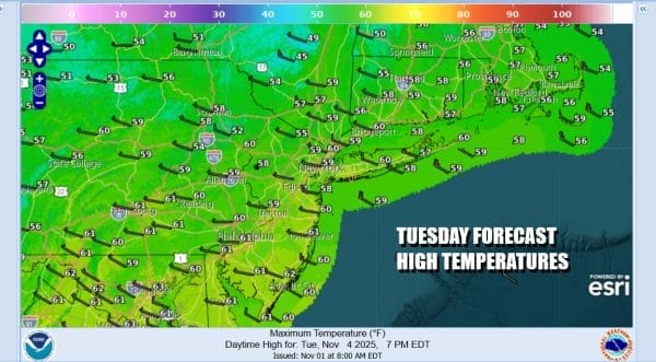 We have a storm system over Atlantic Canada that is strengthening and that means the wind machine is about to get turned on again though this time it will not be as harsh and wind advisories are not posted. We will be under advisory criteria but northwest winds still be gusting 25 to 35 mph at times. We also have plenty of dry air so we should enjoy a good deal of sunshine today. Most high temperatures will be in the mid to upper 50s. Some warm spots in South Jersey and points south could hit 60 or so. Radars are going to be nice and quiet today into Wednesday.