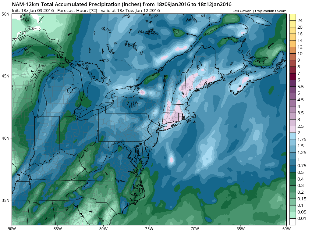 Models are moving to a heavier rain profile for Southern New England and Long Island on Sunday with lower amounts west of these areas. However the rainfall will be robust everywhere with a generous 1 to 3 inch rainfall forecast for the entire area from Eastern Pennsylvania to Southern New England.