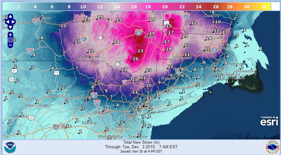 National Weather Service Snow Forecast Maps For Sunday Monday December 1-2 2019