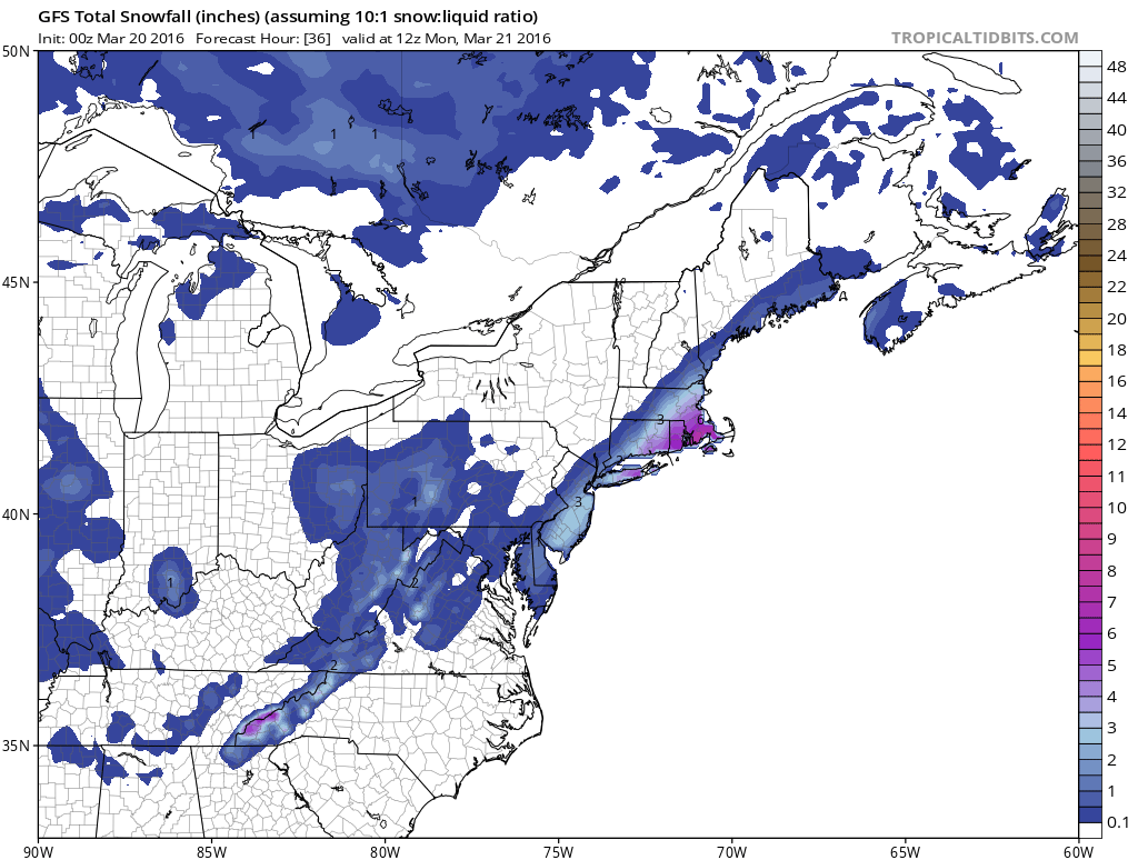 National Weather Service Snowfall Forecasts Sunday 5AM 3/20/2016