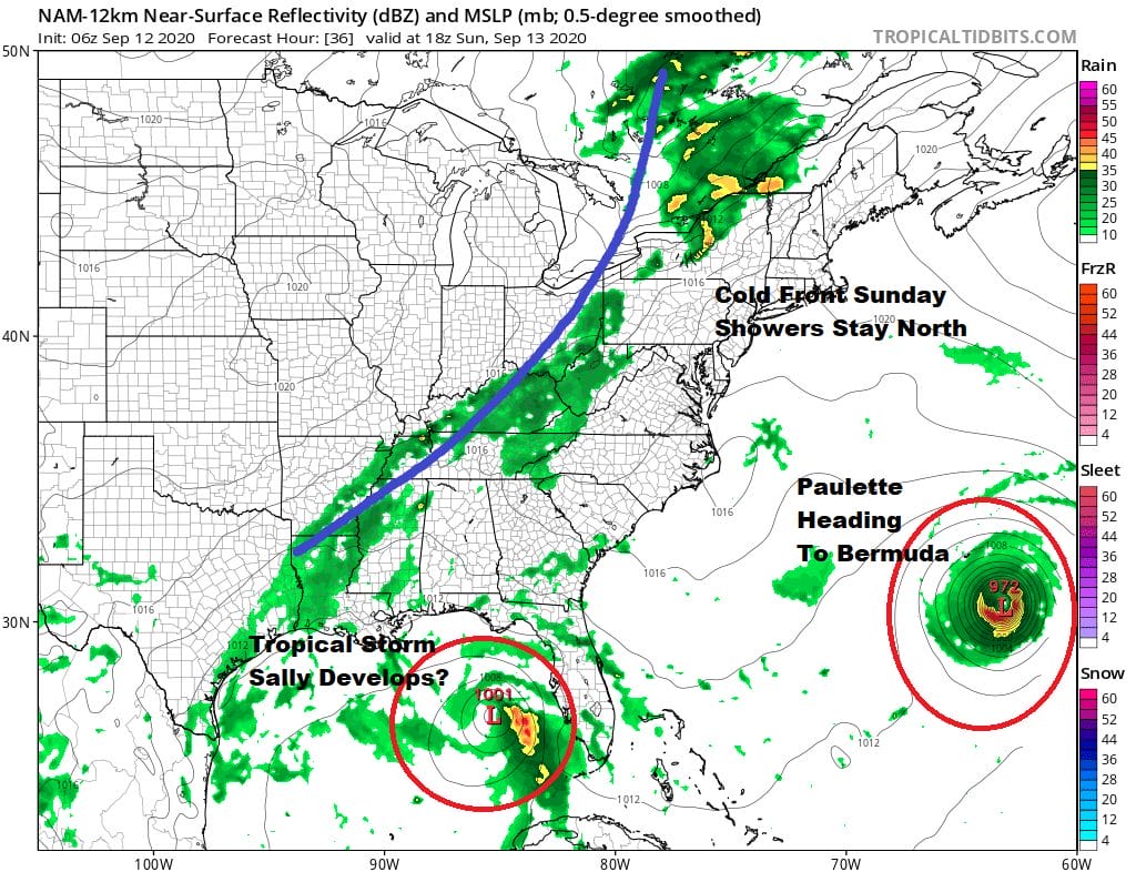 While Paulette passes near Bermuda likely as a hurricane Monday and Tropical Depression 19 likely develops into Tropical Storm Sally, neither storm has any weather impact here. The only impact from Paulette will be a roughing up of the surf along the shore line from Southern New England to the Mid Atlantic coast early next week. The only weather complication here and it is a minor one comes Thursday when another weak cold front moves through bringing in another cool dry high from Canada into the Northeast. This looks to continue the nice weather right into next weekend. This means sunshine by day and clear by night with daytime highs in the 70s and nighttime lows in the 50s. The last week of summer goes out on a very good note.