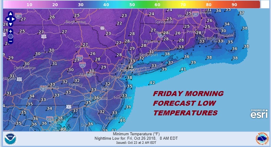 Wednesday look for sunshine and some clouds with a gusty breeze at times and highs just into the 50s. High pressure builds down from the Great Lakes and Southeastern Canada which will lead to cold conditions Thursday and Friday. Highs both days just in the 40s to near 50. Friday morning will bring a widespread freeze and even the warmer urban areas which have been the last to hold up above freezing could finally capitulate.