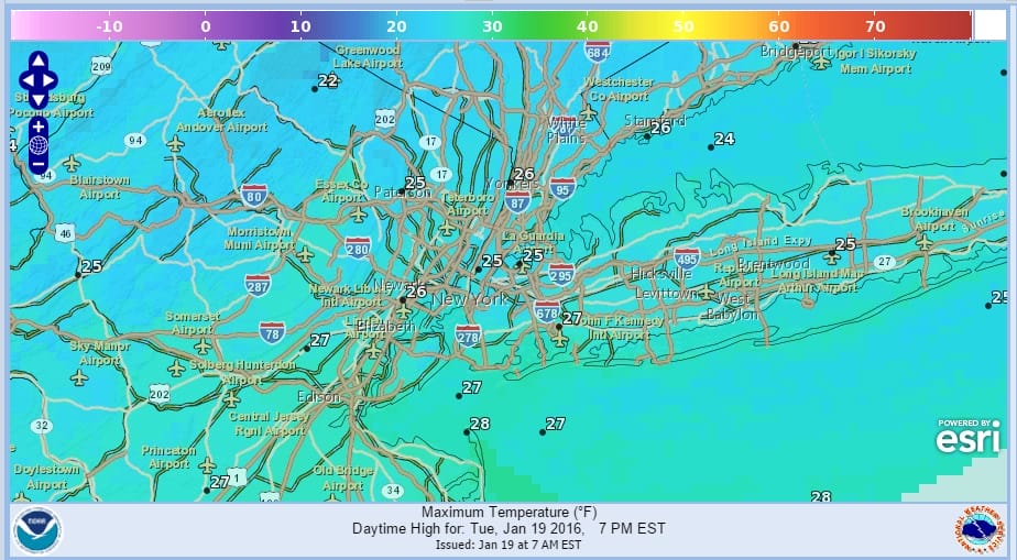 Radars remain quiet today and should really remain quiet until Friday when we start to deal with what could be a major winter storm for NYC and much of the Middle Atlantic States and Northeast Friday night and Saturday. Tonight will be clear and not as cold with lows in the teens and low 20s. It should moderate on Wednesday though we will have more clouds than sunshine. Highs will reach back into the 30s. Thursday and Friday will be a little colder again but not too harsh with less wind issues. Sunshine Thursday with highs in the upper 20s to lower 30s. Friday look for increasing clouds with highs not out of the 20s. Then we see snow developing here during Friday night and continuing over the weekend.