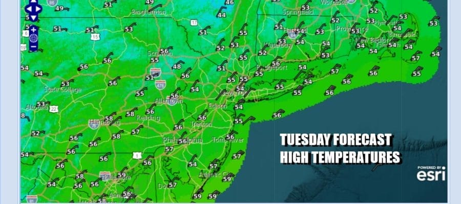 Wednesday we will start to see deterioration thanks to the strengthening onshore low. East winds will pick up. We will have lots of clouds around and there will likely be some areas of light rain or drizzle that will develop. The onshore flow will keep things damp and raw with high temperatures will be mostly in the 50s.