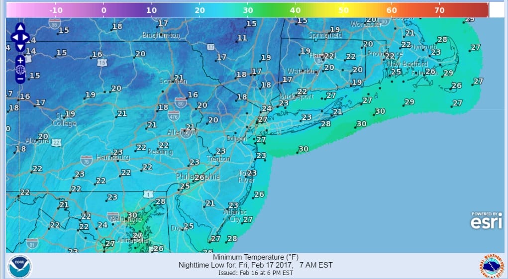 FORECAST LOW TEMPERATURES FRIDAY MORNING