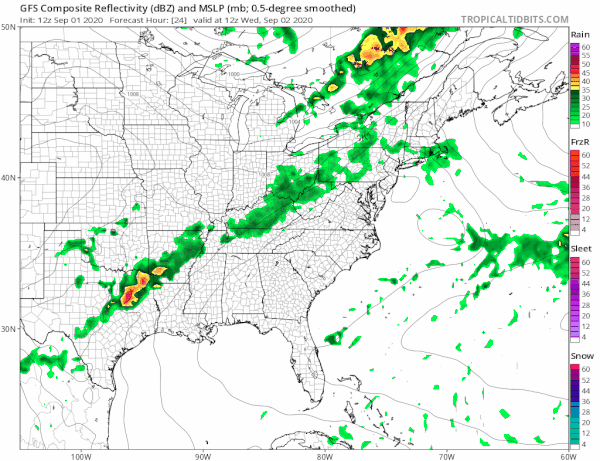 There was nothing in today’s run of weather models that changes the forecast from Thursday through Monday. Thursday will be warm and humid with some sunshine and the chance for scattered thunderstorms. Highs will be in the mid to upper 80s.
