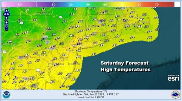A weather front approaching today completely falls apart with no issues and another weather front will approach on Sunday. This front is also on the weak side so we are looking for nothing more than a few passing scattered showers Sunday night leaving the dayside partly sunny with highs reaching into the 50s in most places.