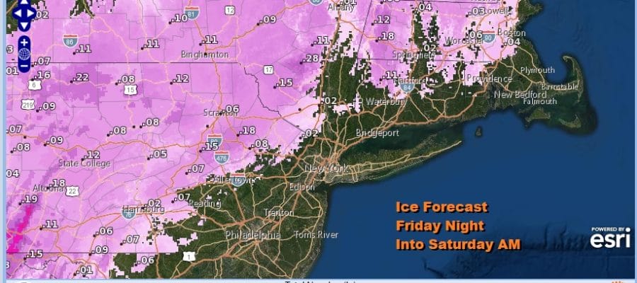 This system appears to be rather straight forward. We are looking at a period of icing mostly inland. Areas in Central Pennsylvania northeast to the Catskills and north of Route 84 up to the upper Hudson Valley could see a longer period of icing. Most icing amounts will fall in the range of a tenth to a quarter of an inch of ice accretion.