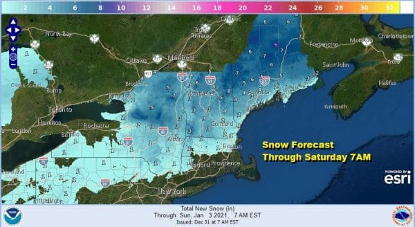 Snow from this low will be mainly in Northeastern NY into Vermont, New Hampshire, and Maine where it looks like it could be a 3 to 6/4 to 8 inch type snow event.