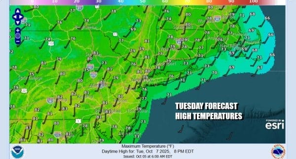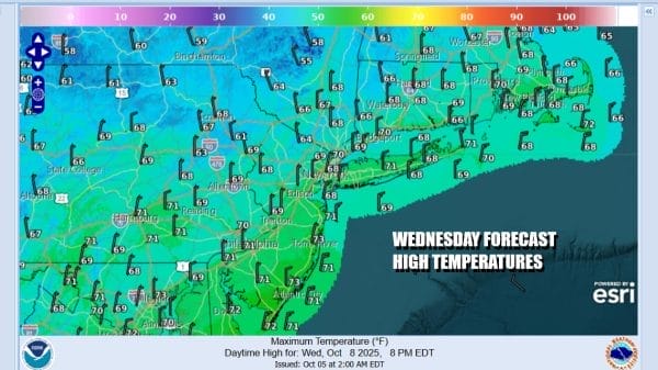 Wednesday night is going to be rather chilly under clear skies and a northerly wind. Lows Thursday morning will be in the 40s in most places with some of the colder inland spots north of Interstate 84 dropping into the 30s. Thursday will be a chilly fall day with sunshine but high temperatures for most places will just make it back to the lower 60s and a few colder spots inland may not get out of the 50s.