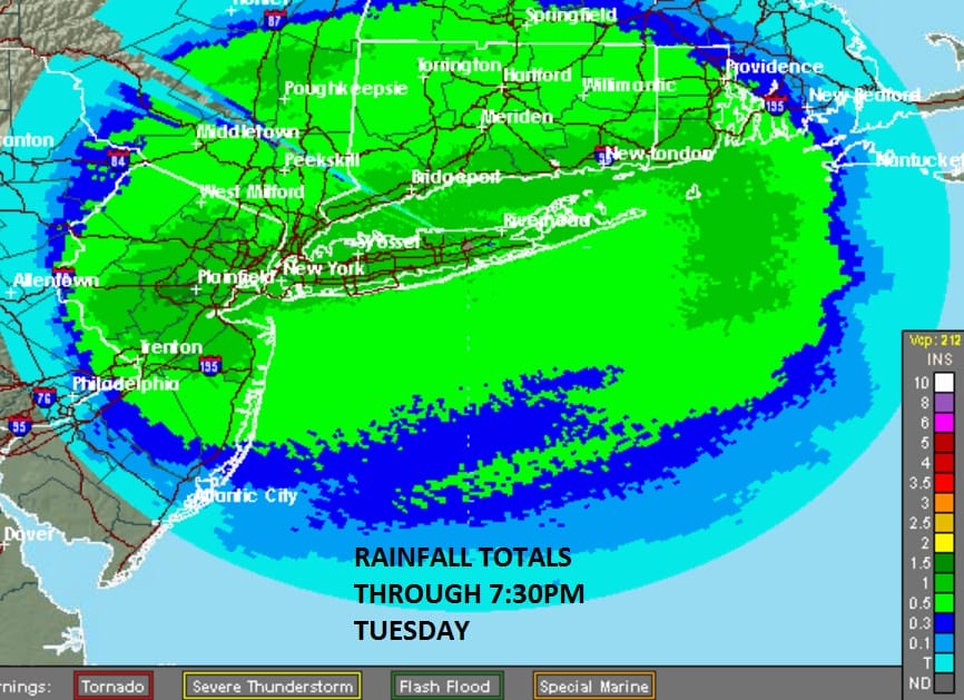 I don’t expect too much to happen during Wednesday morning though some showers might start to increase over Southern areas of New Jersey and Southeastern Pennsylvania. Gradually we will see more areas of rain develop but there will be breaks in between. There will also be a few thunderstorms in the mix as well. We should be able to grind out another inch or so of rain out of this with some locally higher amounts possible around thunderstorms.