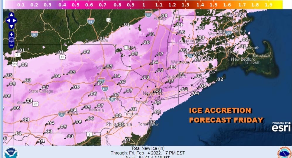 I’m anticipating we will see winter weather advisories go up for much of Eastern Pennsylvania to Southern New England on Friday as this cold front goes through Thursday night, cold air drains southward from a cold high in Eastern Canada, and we see freezing rain that perhaps ends as some snow later Friday afternoon. It seems we will avoid a serious ice storm which is great news but there will be some ice accretion of a tenth to as much as 2 tenths of an inch and that is certainly enough to ice up surfaces, roadways etc. Brining of roads may not be an option since it will be raining Thursday night which washes the brine away.