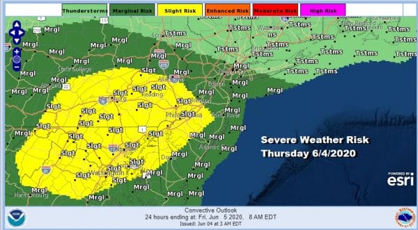 Severe Weather Risk Over Parts of Area Late Today Tonight