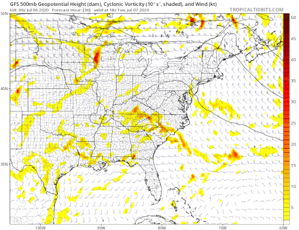 The flow along the East Coast is weak but it is weak south south west. A trough moving into the Northern Plains will act either as a kicker and punt the system out to the northeast or it will lift it northward like a lever and that could bring a threat for a more widespread round of showers and thunderstorms especially near the coast. The National Hurricane Center highlights this system for possible development once the low emerges offshore later this week and we agree with that possibility. This is something we should watch for later this week. It certainly looks as if the next 4 days will be pretty much the same story of very warm to hot and very humid with the risk for scattered thunderstorms. Friday into Saturday it is about the system coming up from the south and what that entails. Afterwards we have more weakness in the flow as troughing will be in the east through the weekend and into early next week. That might break the heat a bit but it will also increase the chances for showers and thunderstorms along the way.