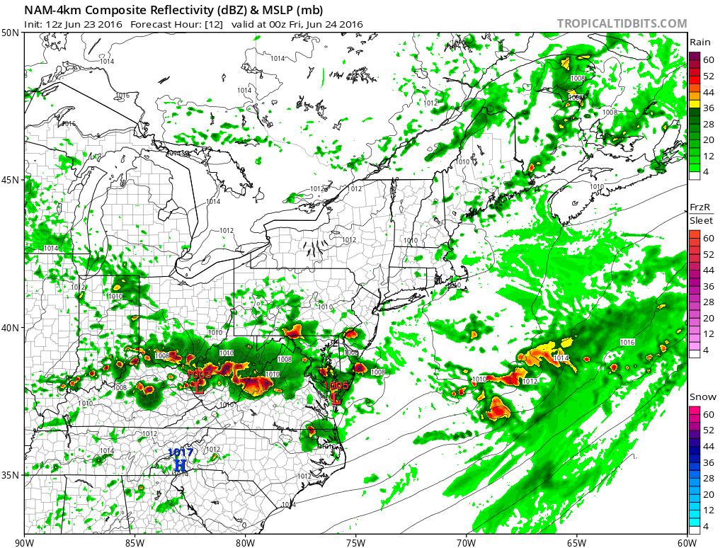 The new NAM model run does show some isolated cells over Southern New Jersey but the strongest storms are found back through Western Virginia and West Virginia and they are moving from north to south. Once this weather system clears the coast skies will clear out tonight and sunshine returns Friday and will be with us through the weekend