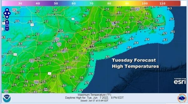The rain will end from west to east beginning at 5am in Eastern Pennsylvania, around 8AM in NYC in the Hudson Valley to Coastal NJ and between 8 and 11am in Southern and Southeastern New England. After that drier air will move in and we should see decreasing clouds and perhaps some sunshine Thursday afternoon. Highs will be in the upper 70s to lower 80s.