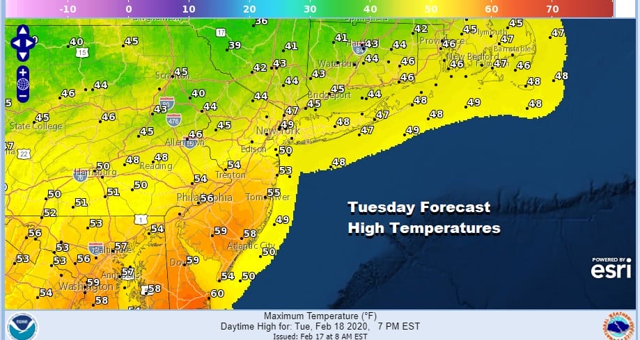 Rainfall amounts also are nothing to shout home about as they will be generally a quarter of an inch or less along the I-95 urban corridor. Higher amounts will occur well to the west and north closer to the low track.