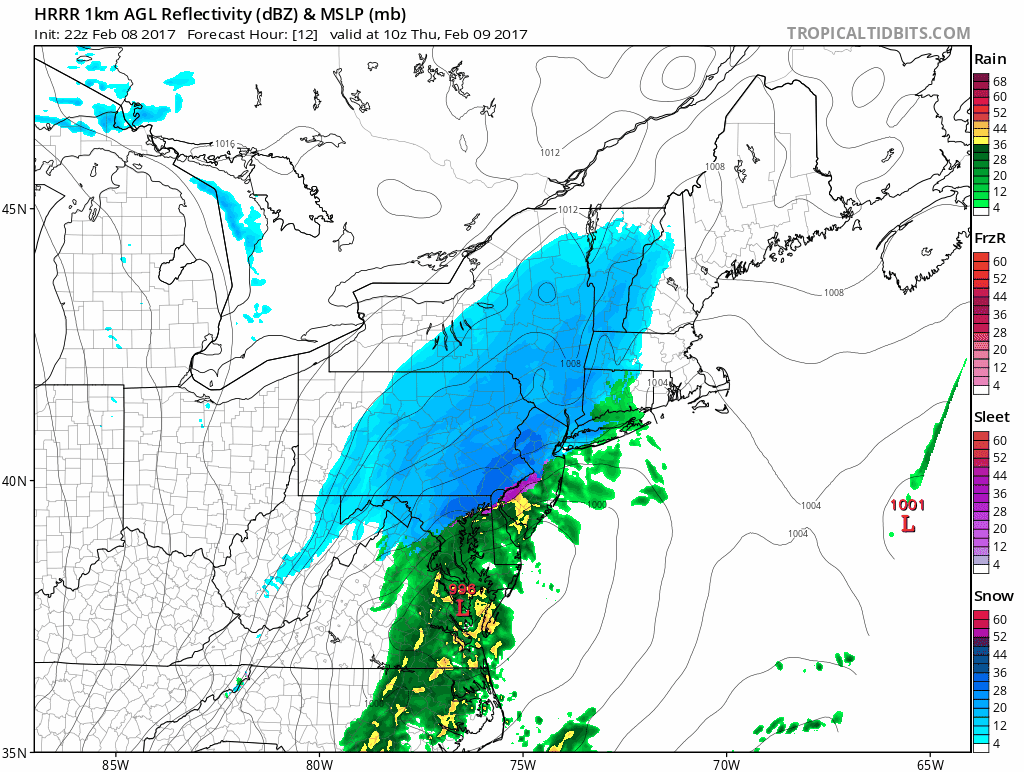 From the standpoint of snow storms, this will not compare to last year’s blizzard. The speed of movement prevents this from becoming a 2 ft snow producer so amounts will be half of what the Blizzard of 2016 produced. However at least for a number of hours tomorrow, the snow will fall hard with the likelihood of a few thunderstorms in the mix as well. Temperatures will settle in the 20s during the storm and fall to the mid teens to single digits Friday morning. Friday will be dry with some sunshine and arriving clouds with highs in the 20s to near 30.