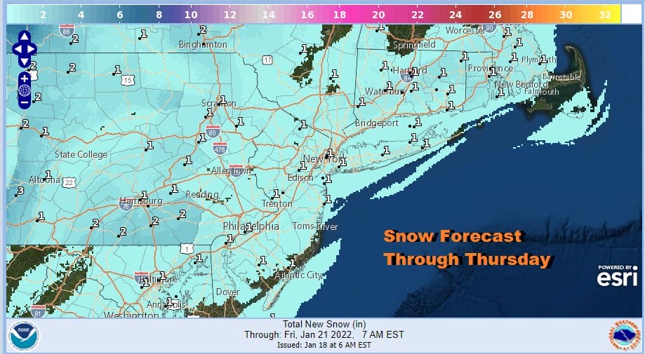 For now we are left hanging here regarding this outcome. In the meantime let’s go back to Thursday’s frontal passage and wave. The NWS snow forecast maps are out for this time frame and the early call is for a coating to an inch or so. This is the first snow forecast map for Thursday and I think we might see these numbers adjusted upward later on.