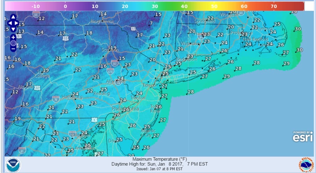 Tuesday we begin the transition to warmer air that will lead to temperatures in the 50s. However getting there will mean increasing clouds and some rain that could start out as freezing rain sleet and snow in some places later Tuesday. Temperatures will slowly rise and then the rest of the week will be mild. We will have more on Tuesday’s approaching weather with our posts on Sunday.