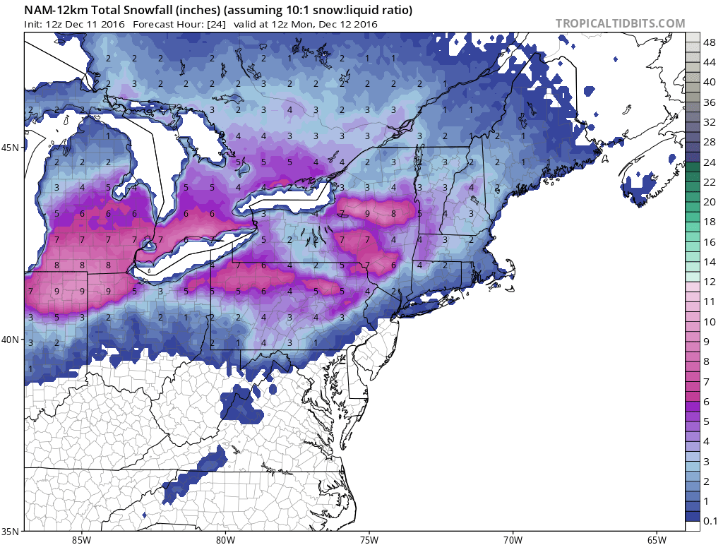 Here is the latest Nam snowfall forecast map. I think it supports leaving my forecast exactly the way it is.
