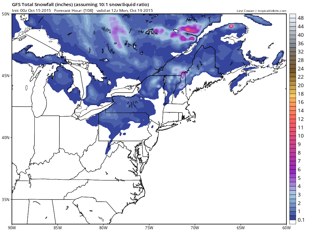 Call it practice for the coming winter but I thought I would put up the snow forecast maps from the GFS and Nam models from the overnight guidance and see what it comes up with. Clearly the models have 2 different ideas.