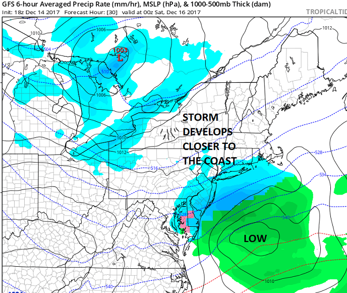 We have seen a number of times including last Saturday of systems backing westward at the last minute and weather models seem to have waited for the last minute for this system on Friday. The Nam model has now joined the party here and would suggest snow for Southern & Central New Jersey Friday afternoon extending northeastward to Long Island by Friday evening.