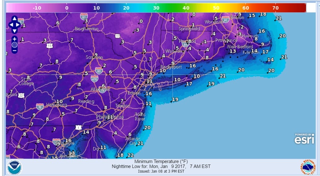 MONDAY MORNING FORECAST LOWS
