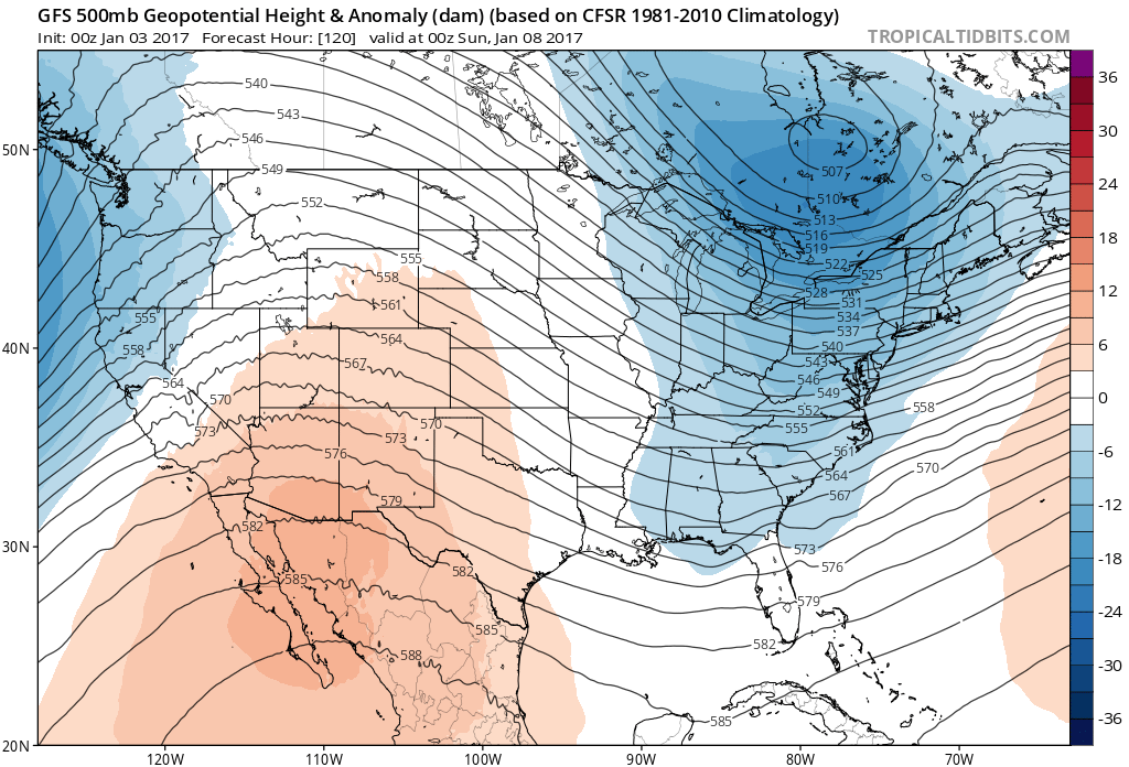 Now assuming that these models are correct the big question becomes what impact does that have on the second system behind it. Will there be room left? The GFS again overwhelms cold air and has a less deep upper air structure than the Canadian which is far more dynamic and leaves some room.