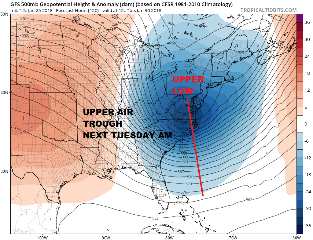 As if forecasting snow isn’t difficult enough we have two situations next week that bear some watching but they are the sorts of systems that are almost impossible to forecast especially the first one for Tuesday. We have a wave coming out of the Northeastern Gulf of Mexico that moves up the coast offshore. We will have rain showers on a frontal boundary Sunday as it moves through. That is a no brainer. Then we will watch the wave of low pressure develop as it moves northeastward. The low might skim the coast with some rain on Monday but will be primarily offshore. The snow comes from the upper air trough that is swinging around to the coast from the Great Lakes.