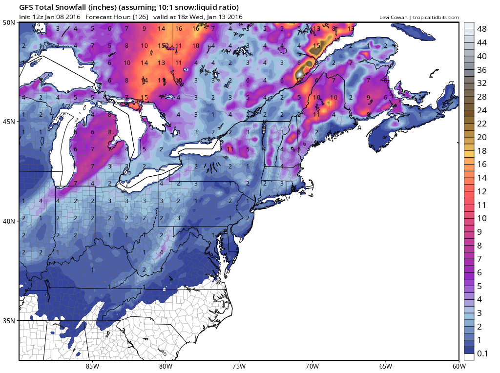 The GFS shows 1 to 2 inches across the region and you can see the higher amounts in Central and Northern New England. This is why where this redevelops is so important because the further south the secondary low forms, the better chance that you can tap the moisture when it strengthens.