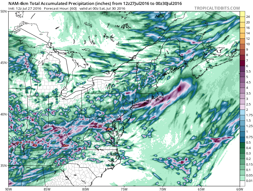 Models have been all over the place regarding Friday’s soaking rain which some models going north of New York City and some going south. Robust rainfall amounts are being produced by some models and less in others. This system certainly has the potential to produce a 2 to 3 inch soaking rain for somebody if it sets up right. Below are some model depictions on rainfall amounts.