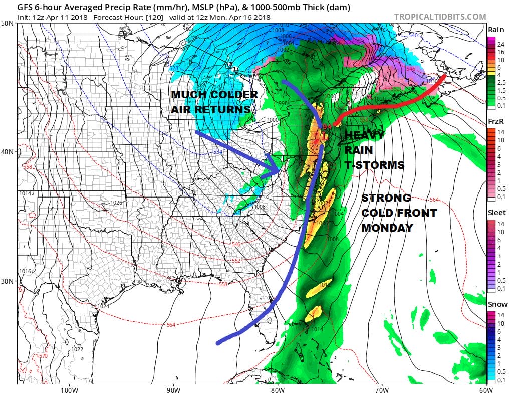 We all anxiously await the warm up and we can see that warm air coming this morning with clouds coming in from the west and there are some thunderstorms in a narrow band in Western Pennsylvania. Today’s temperatures will likely reach the 60s in New Jersey and Southern areas of the Hudson Valley. Long Island and Southern New England have to deal with a south wind more than likely and that will hold temperatures down in the 50s. Showers this afternoon should pass mainly north and west of the coast and should be brief in nature, in case one does sneak in.