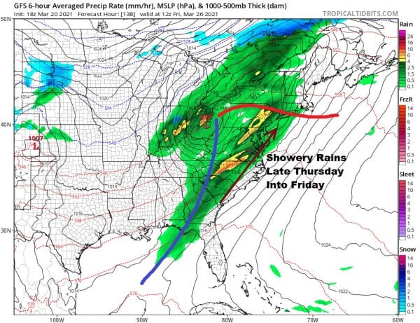 A strong low will be coming out of the Gulf States late this week and head up to our west. This will likely produce some severe weather over parts of the Gulf States. We will likely see showery rains head our way later Thursday into Friday. Everything should move along and that will leave us with nice weather for next weekend.