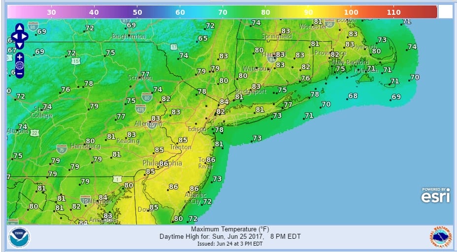 The rest of the week high pressure will move off the Middle Atlantic Coast and we will have another one of these 2 to 3 day warm ups that will increase the temperature and humidity. We will be dry though Friday from the standpoint of rain. Temperatures will rise through the 80s and possible reach near 90 as early as Thursday but more than likely by Friday. The next cold front will arrive over the weekend though and cut any heat wave off before it gets started.