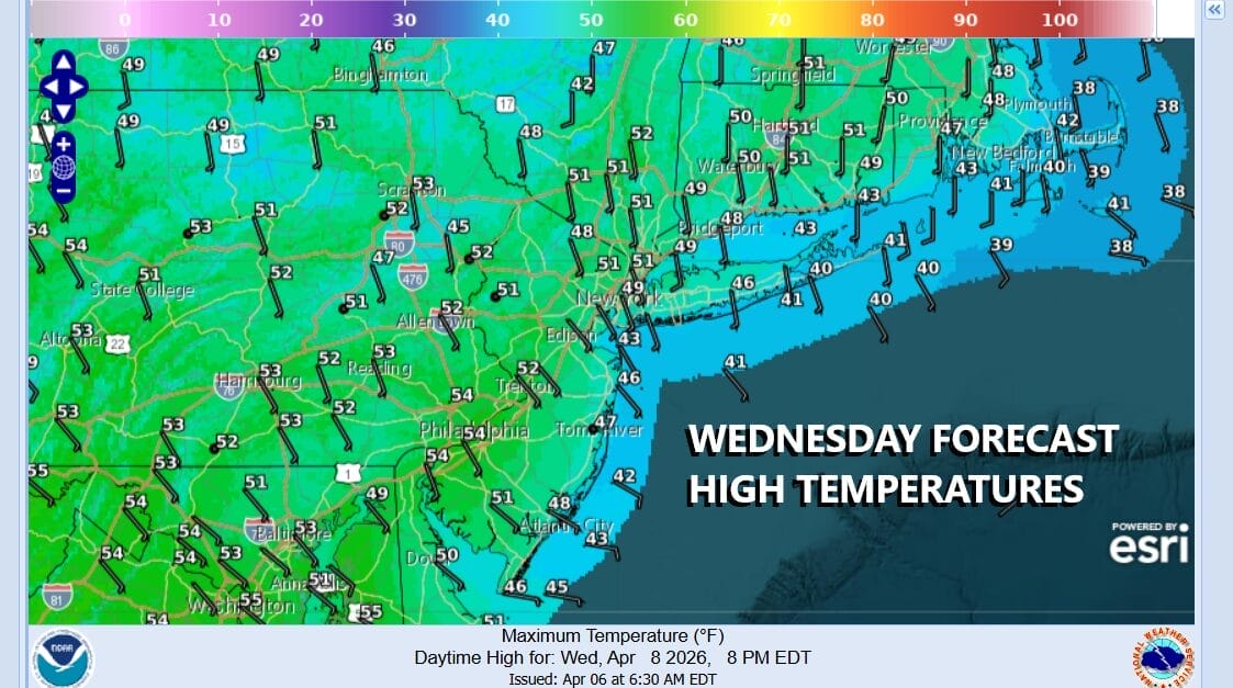 Tonight we will see clear skies and light winds and that will send inland lows down in the 20s while along the coast and in warmer urban areas, lows will be in the low to middle 30s. Once again aeras where the growing season has begun will see frosts and freezes. It always pays to wait until early May before putting down annuals in the garden as well as summer vegetables.