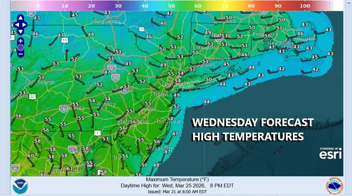 Thursday night we will get into rain and there might even be a rumble or two of thunder until the front passes south. Friday we will still be cloudy and as we said earlier there will be some lingering rain or showers around especially from New York City and Long Island south. Temperatures will be settling in the 50s and there will be a raw feel to things. By Saturday morning we will be in the mid 20s to near 30. Saturday looks to be a sunny breezy cold day with highs only in the low to mid 40s. Sunday looks dry and a little warmer with some sunshine. Highs Sunday should make it back to into the 50s in most places.