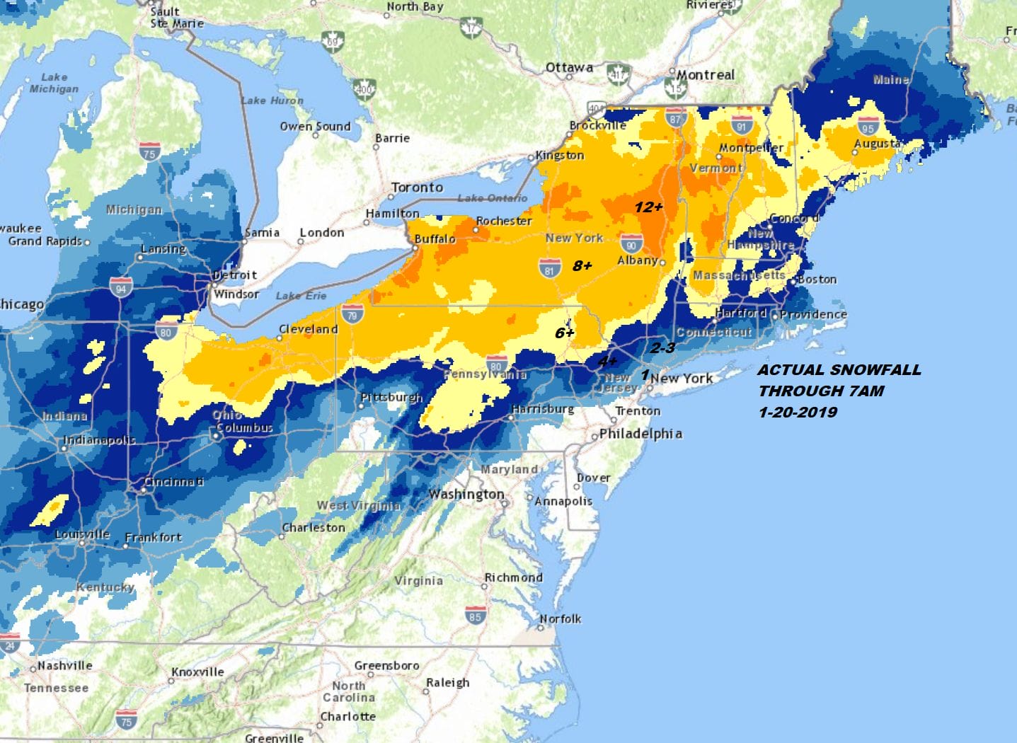For much of our area the precipitation is over with however it still goes on in New England with heavy snow from Central and Northern New England back to Northeastern NY. Tomorrow’s snow map will have all the final totals from this storm.