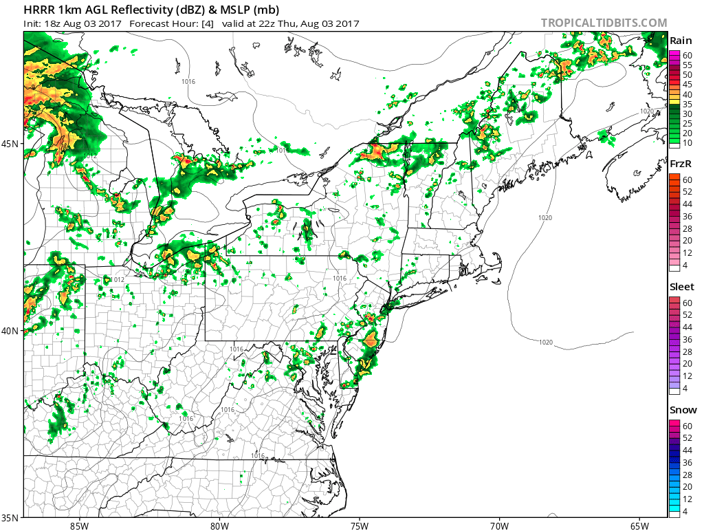 Going into this evening we are beginning to see some thunderstorms popping up on the radar. This is nothing like it was yesterday when at this time there were widespread thunderstorms developing just about everywhere. This evening’s thunderstorm activity will be much more subdued but there is always a chance that an individual cell could fire up and become strong so that bear that in mind and keep an eye to the sky through this evening until the threat subsides. Then it is another warm and humid night with lows in the 60s to near 70. Some patchy fog will develop along some coastal areas.