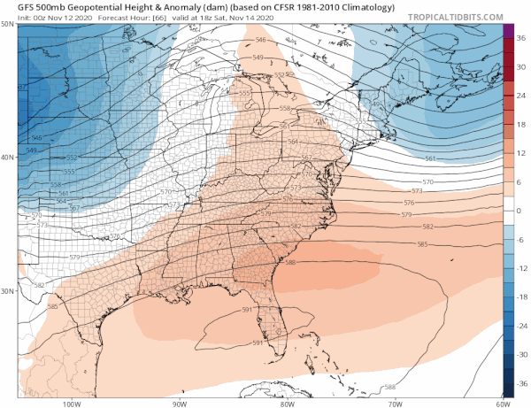 We are going to have more work to do on Friday with lots of leftover clouds around. Temperatures will be mostly in the 50s. There could be a few showers running around midday into the afternoon as one last upper air disturbance goes by. Tropical Storm Eta passes well offshore as a post tropical cyclone and then we are on our way to a decent weekend.
