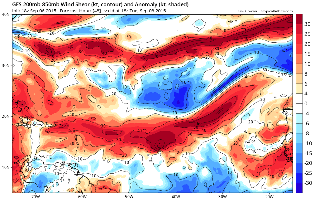 This belt of shearing winds remains pretty much unchanged through the period and the result on the GFS model is that you can’t even find Tropical Storm Grace by the end of the week.