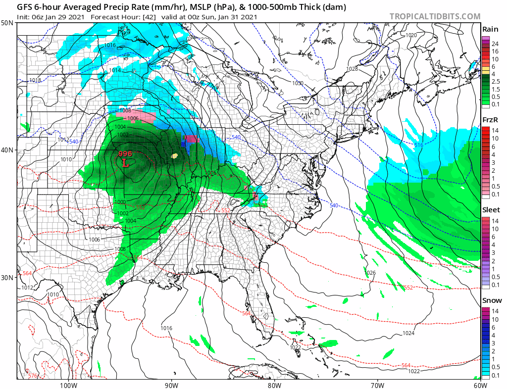 Low pressure will move across the lower Ohio Valley Sunday and weaken while a secondary develops in North Carolina and heads to a position just off the Delaware coast on Monday. The split in the flow and the strong upper feature cutting off means that this will be slow moving. Lots of questions remain of course at this stage. Except for the European model which had a hiccup last night and went suppressed and further south, all the others are very close in their outlooks with this storm system. Snow develops Sunday in Virginal and it reaches Southern Pennsylvania and Southern New Jersey Sunday afternoon and then pushes northward reaching NYC in the early morning hours before daybreak Monday. It then pushes further north into Southern New England during Monday.
