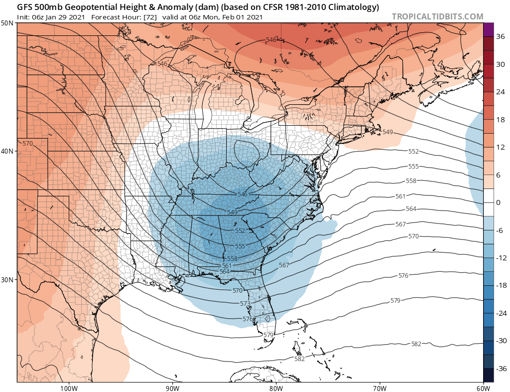 The key to this forecast will be the developing upper low and the track. Typically the heaviest snow falls in a band about 50-150 miles to the northwest of the upper low track putting the I-95 corridor in line for heavy snow but that track is very important here and so is the strength of the upper low. This system is also going to be a problem along the coast regarding coastal flooding and beach erosion are possibilities due to the long fetch from the northeast beginning Sunday. Thankfully we are coming off the peak tides of the full moon so that helps to mitigate the flooding potential somewhat. We have plenty of time to watch this evolve further. In the meantime stay warm!